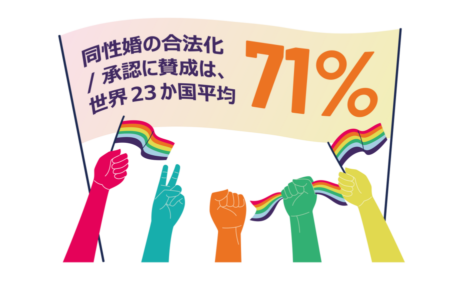 同性婚の合法化・承認に賛成は、世界23か国平均71%
