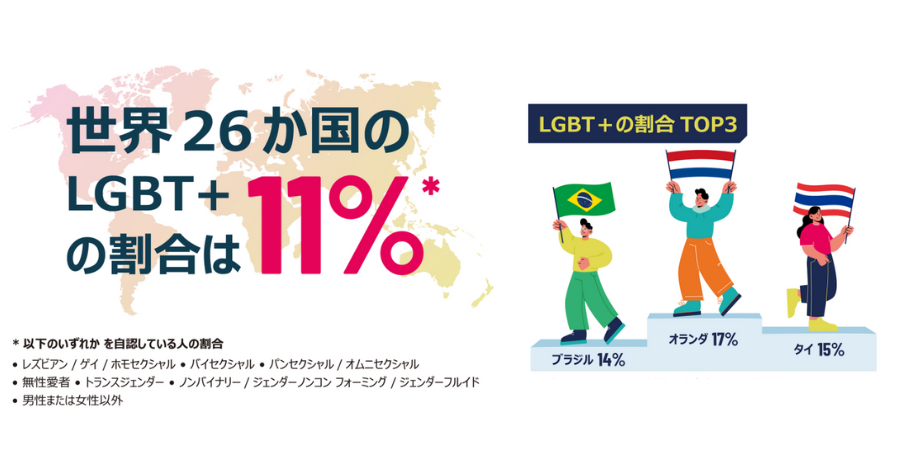 世界26か国のLGBT+の割合は11%、日本は5%※