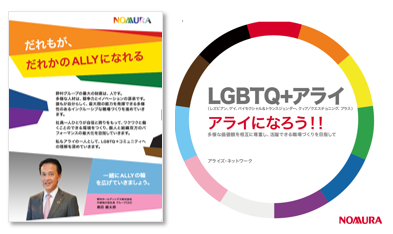 野村ホールディングスでは、世界各地で社員が自発的に取り組む社員ネットワーク(Employee Resource Group)が活発に活動しており、日本では多文化・LGBTQ+・障がい者などをテーマとしている“アライズ・イン・ノムラ”というグループがあります。誰もが自分らしく働く環境整備に取り組む「アライ=(支援者)になろう!」活動を始めて10年を超える歴史を刻んでいます。