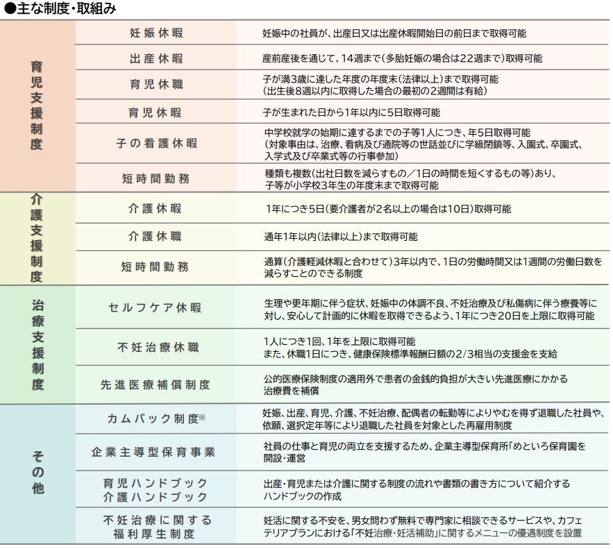 社員が子育て・介護・治療をしながら仕事へのやりがいや充実感を持って働き続けられるよう、