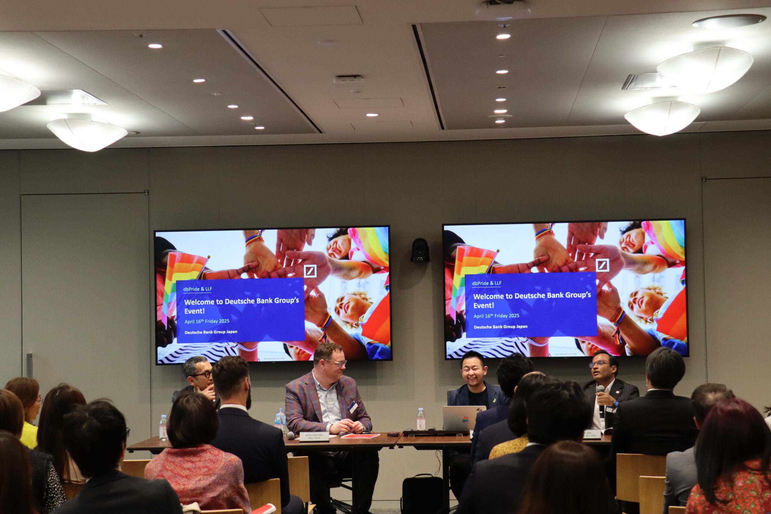 A panel discussion was also held, with Tamio Honma (Country Head), John Tilli (Lead for dbPride Global), Mika Yakushi (CEO of NPO Rebit) which Deutsche Bank supports, and Vaidy Ganapathy (Lead for dbPride Japan), taking the stage. A Japanese version of the report was also distributed to participants.