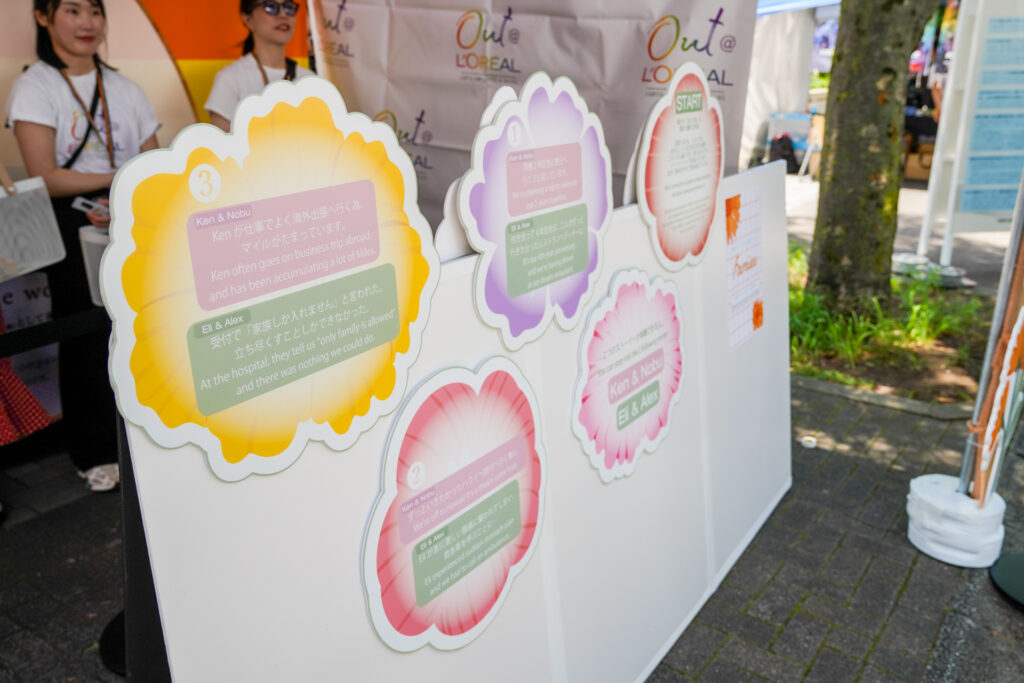 ウィラコーン:いわゆる人生ゲームのような「ライフシチュエーションパネル」の形で、同性カップルが直面するできごとを紹介していきました。ロレアルの製品のサンプリングやプレゼントを渡すまで、並んでいただいている間に展示を見ていただく形です。