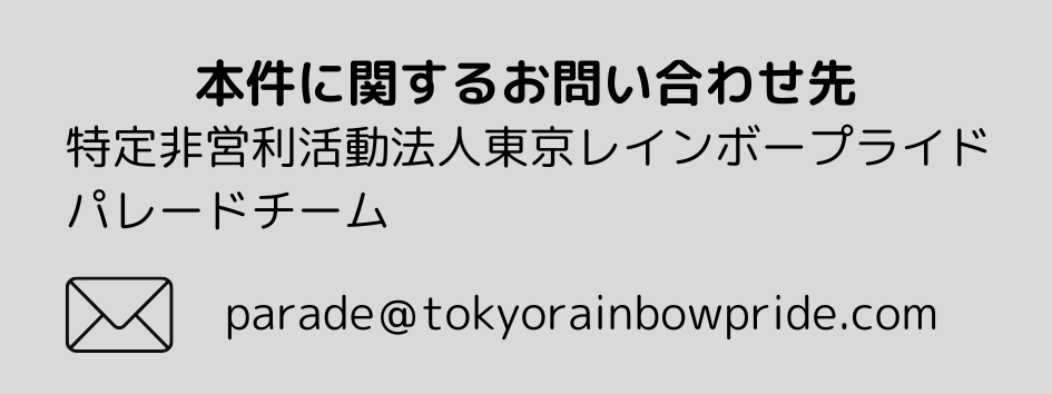 ・対象:Tokyo Pride 2025 Pride Paradeへ参加を希望するLGBTQ+関連の非営利団体の方々(当事者団体・大学等を含む)